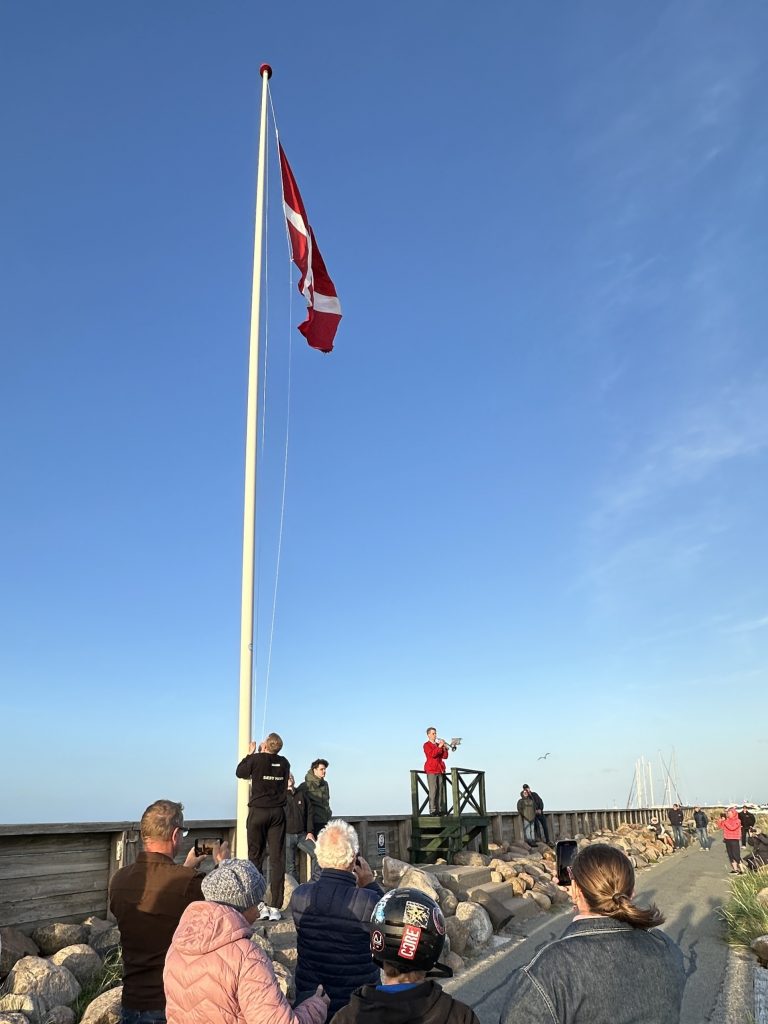 Sein Auftritt endet mit der dänischen Nationalhymne „Det er et yndigt land“ (Dies ist ein herrliches Land).