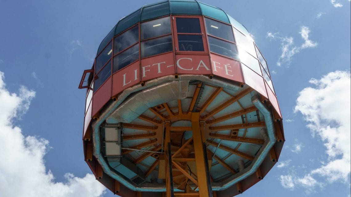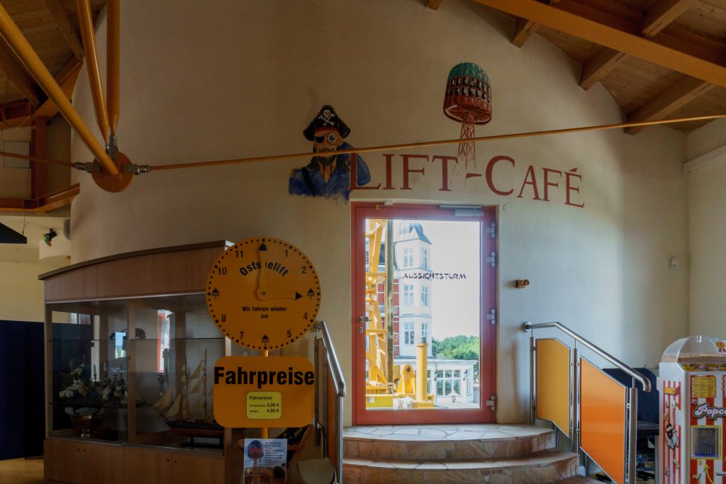 ein in Deutschland einzigartiges Lift-Café, das sich 25 m hoch über den Meeresspiegel erhebt.
