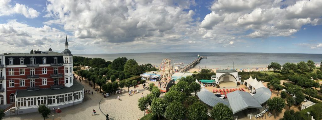 Oben angekommen genießen wir einen phantastischen Blick über Zinnowitz und die Ostsee bis nach Rügen. Eine Stunde schweben wir in dieser luftigen Höhe und lassen den Blick in die Ferne schweifen. Ein Erlebnis …
