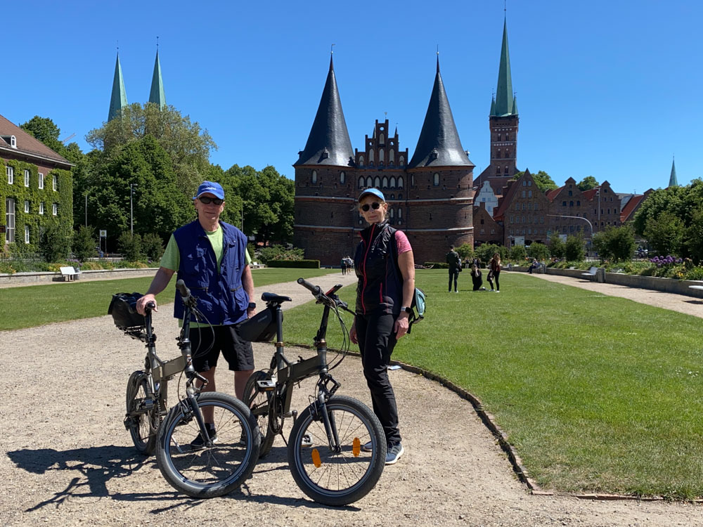 Mit viel Wind im Rücken radeln wir heute nach Lübeck, in die schöne alte Hansestadt an der Trave.
