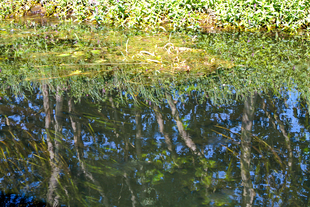 ein Eisvogel, türkis-schillernd fliegt er quer vor uns übers Wasser … ein Naturparadies.