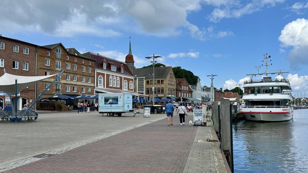 Nach wenigen Kilometern über Wiesen, Felder und Hügel sind wir schon in Kappeln, der kleinen Hafenstadt an Deutschlands einzigem Fjord – die Schlei.