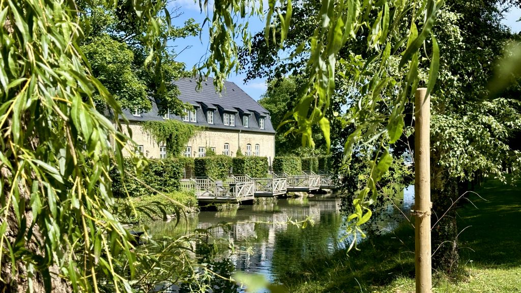 Altes idyllisches Landgut, schöne Ferienwohnungen in umgebauten Nebengebäuden mit Holzterrassen direkt über dem „Burggraben“ 😄👍.