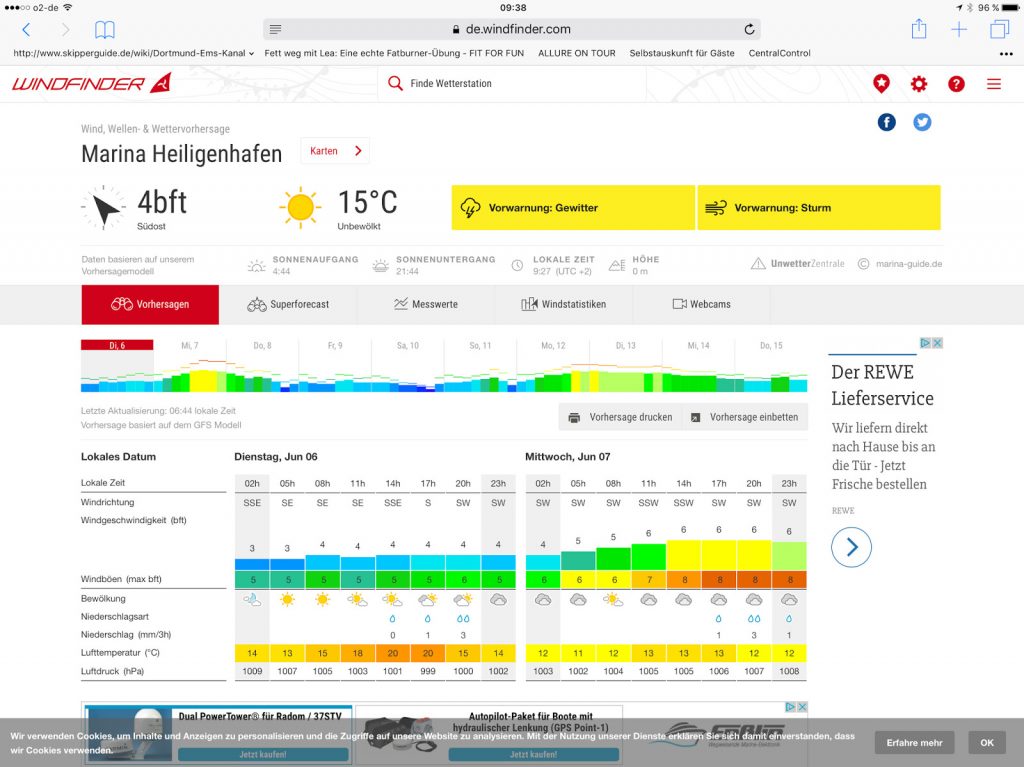 Lena reist ab und das Sturmtief ‚Ingraban‘ übernimmt die Regie im Norden des Landes. Bis zum Nachmittag soll es sich ostwärts ausbreiten, merklich kühler werden und schauerartig regnen. Also planen wir gleich nach Lenas Abreise zu starten, raus auf die Kieler Förde, in den Wind … damit wir bald in Heiligenhafen sind. Entfernung ca. 80km.