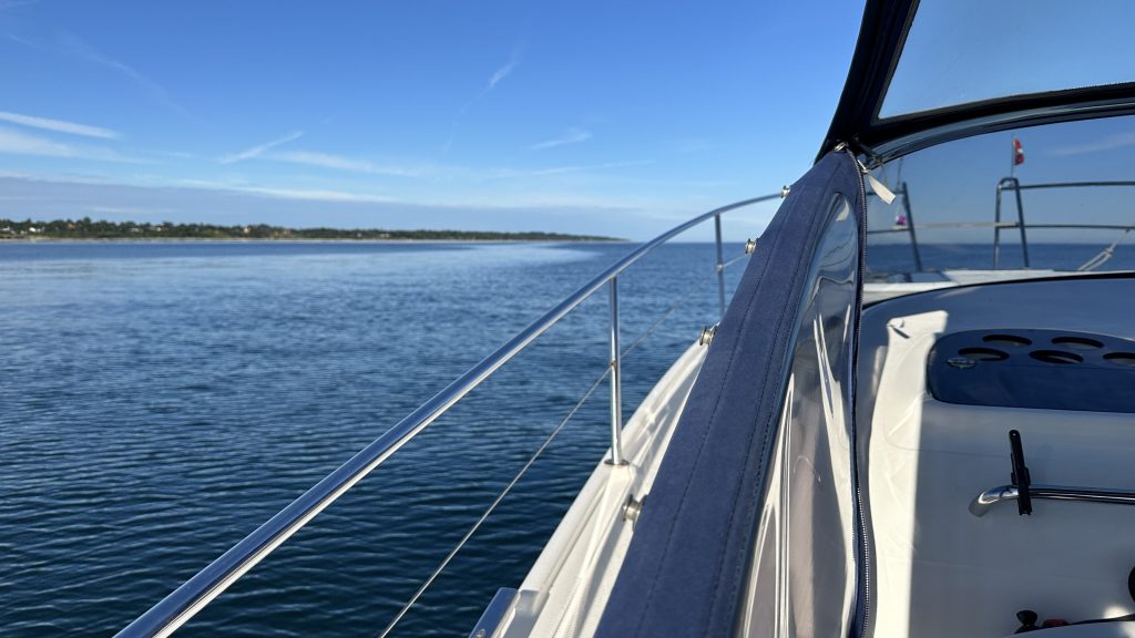 Laut unserer Wetter-App „Ventusky“ erwartet uns: 0,1 m Welle, 2 bft aus S / SO … sieht nach perfektem Motorbootwetter aus 😀.
