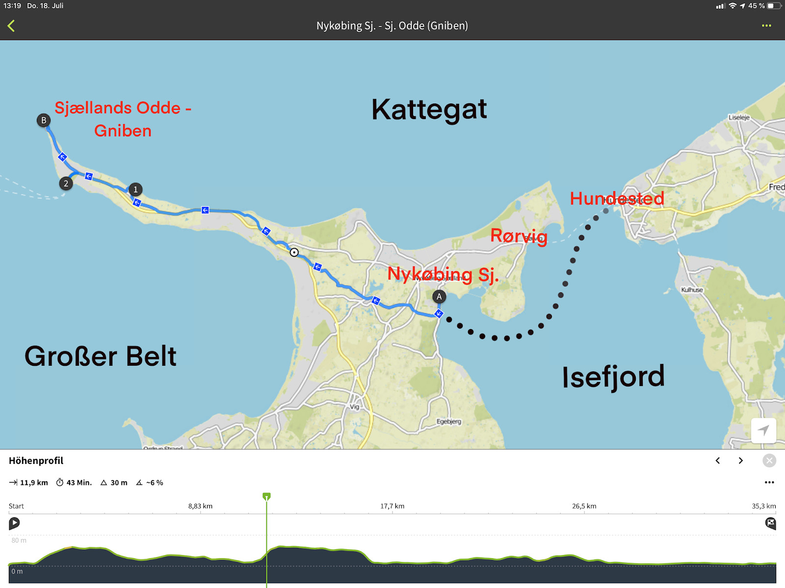 Tolle Ausflugsziele (Rørvig / Gniben auf Sj. Odde) fordern uns jedoch auf andere Art und Weise: ein „knackiges Herz-Kreislauf-Training“ gibt’s hier in Nordseeland gratis dazu.