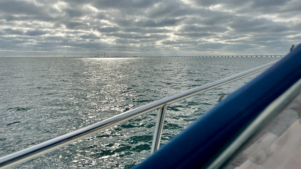 Kein Regenschauer in Sicht, Wind und Welle stimmen, 3 bft aus West … wir gleiten angenehm mit dem Strom des Storebælt … ein Geschenk für uns.