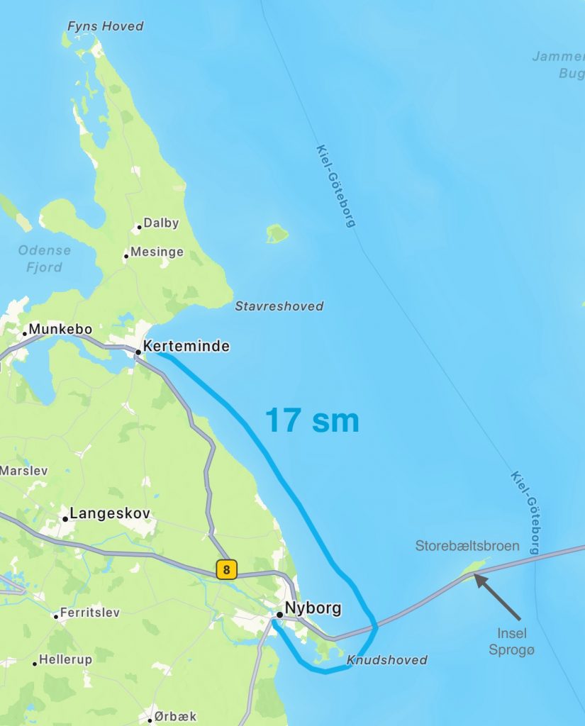 Bei frischen 15° C lösen wir die Leinen in Kerteminde … es geht weiter in den nächsten Hafen: Nyborg.