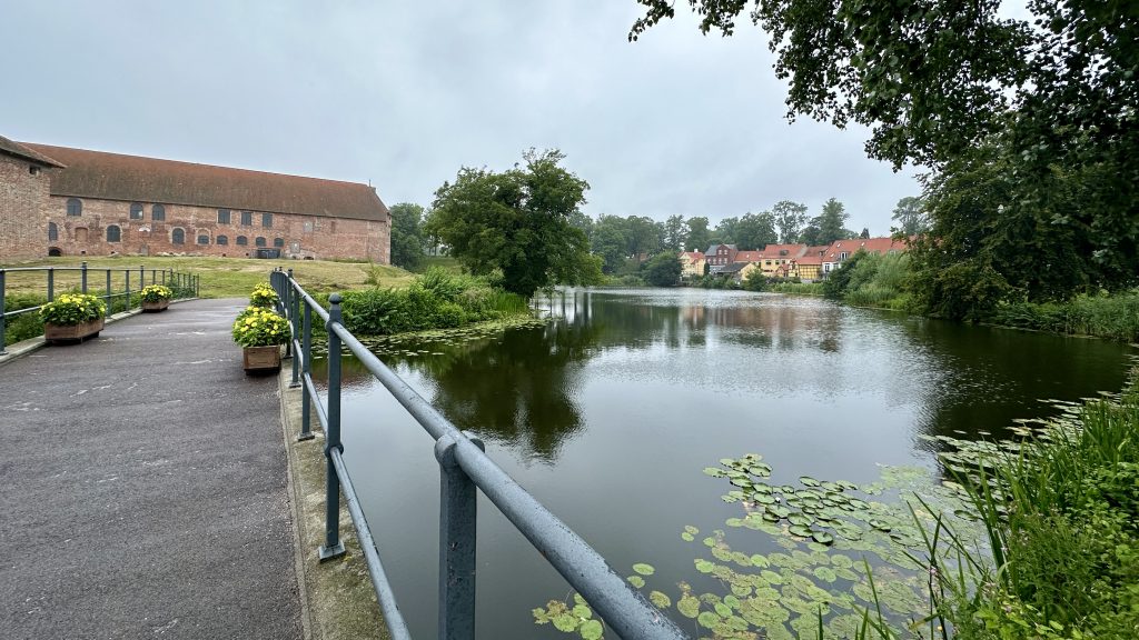 Zum Glück lernten wir Nyborg 2021 bei schönem Wetter kennen – heute nur ein feuchter Stadtrundgang zum Schloss Nyborg, dem Wahrzeichen der Stadt.