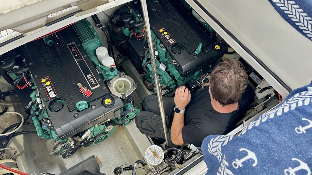 09:00 Uhr. Alle Schotten dicht, alles im Boot sicher verstaut, wir sind bereit zum Ablegen. Maschinen START … oh oh! : Der Anlasser gurgelt wie ein alter Seemann, dem der Rum im Hals stecken geblieben ist. Die Steuerbordmaschine bleibt stumm. Kein Mucks. Nichts.