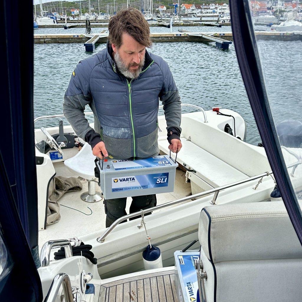 Ein Typ wie aus einem nordischen Abenteuerroman, nur mit Werkzeugkoffer statt Axt. Er steigt an Bord, checkt die Lage, baut die alten Batterien aus – und wuchtet die neuen in den Bauch unserer Allure.