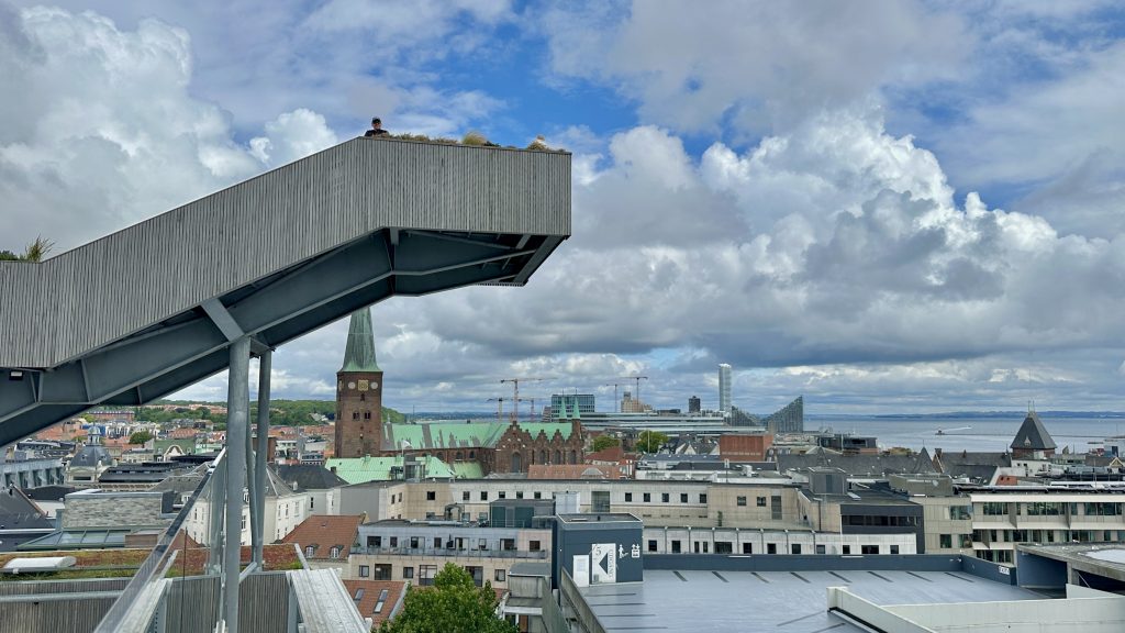 Eine spektakuläre (kostenlose!) 360 °‑Aussicht über Århus – von der Domkirche bis zum Hafen – dazu eine Skywalk-Glasrampe, die 27 m über der Strøget-Einkaufsstraße hinausragt 😯 … wir sind begeistert.