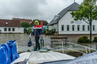 Fast schon außergewöhnlich ist es, dass wir ohne ‚Abwettern‘-Pause weiterfahren können. Heute hat’s mal geklappt. Zur Schlossinsel der pommerschen Kleinstadt Wolgast im Peenestrom sind es