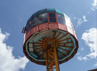 In Zinnowitz gibt es etwas außergewöhnliches:ein in Deutschland einzigartiges Lift-Café, das sich 25 m hoch über den Meeresspiegel erhebt. Oben angekommen genießen wir einen phantastischen