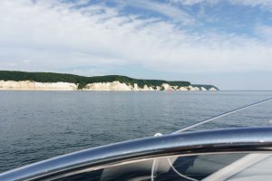 Von Lauterbach aus starten wir früh morgens mit einem Kribbeln im Bauch bei herrlich spiegelglattem Wasser die Ostküste Rügens entlang. Wir umrunden die südliche Kreidefelsenküste