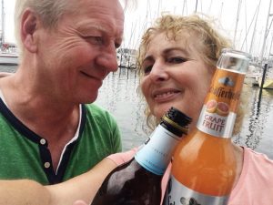 Die ALLURE hängt sicher an vier Leinen „Am Stau“ an der Trave und hat eine Ruhepause verdient. Alles passt: sicherer Hafen, Weizenbier ist aus, Pfälzer Riesling ebenso,