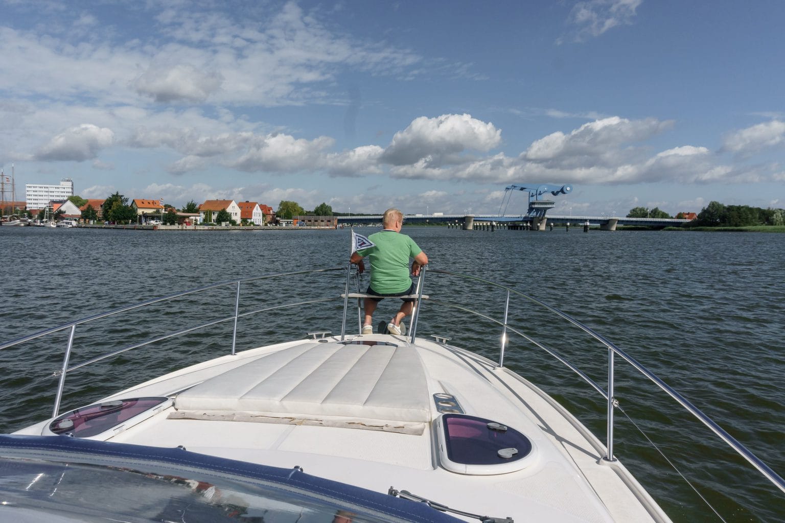Kurz später dann im Peenestrom tuckern wir mit Rückenwind im Wohlfühlmodus bis zum Hafen Karlshagen und genießen die Zeit zum Filmen.