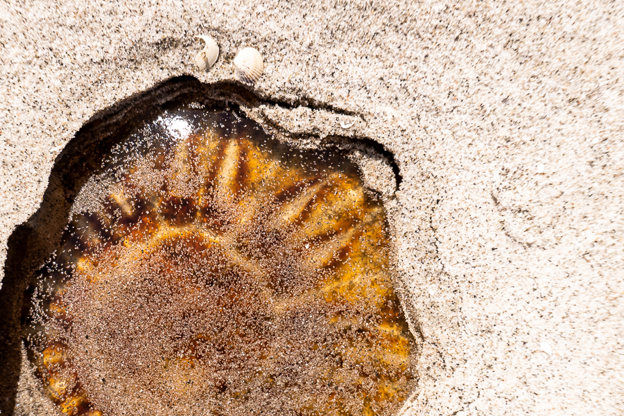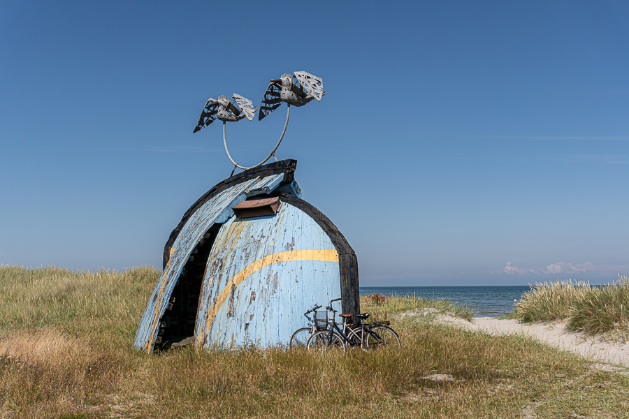Die Küste hier am Kattegat ist eine ‚Barre Küste‘, das heißt, sie wird jedes Jahr grösser, mehr und mehr Sand kommt dazu, und es bilden sich kleine Lagunen und Badeinseln.