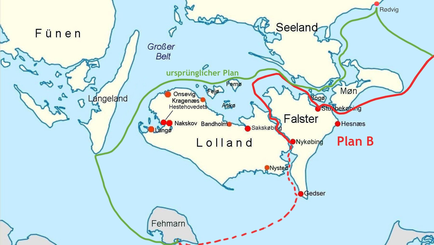 Unser ursprünglicher Plan war eigentlich von der schwedischen Küste überzusetzen nach Rødvig, über die Faxe Bugt, den Bøgestrøm, den Ulvsund weiter übers Smålandsfarvandet nach Langeland und dann traditionell nach Fehmarn.