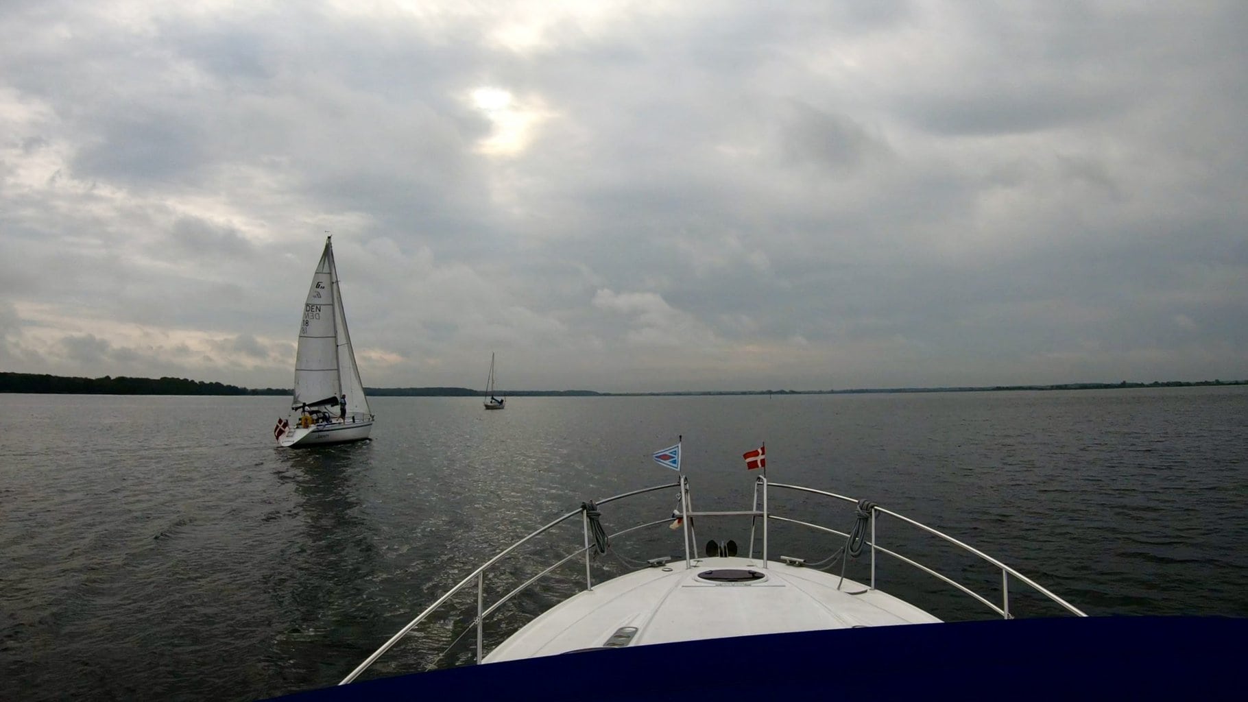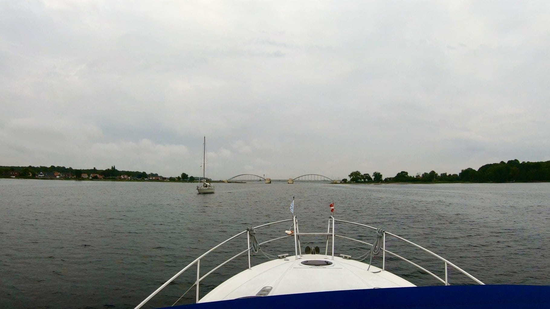 Im Guldborgsund fühlt man sich in Verdrängerfahrt mehr wie auf einer romantischen Flussfahrt im flachen Fahrwasser.