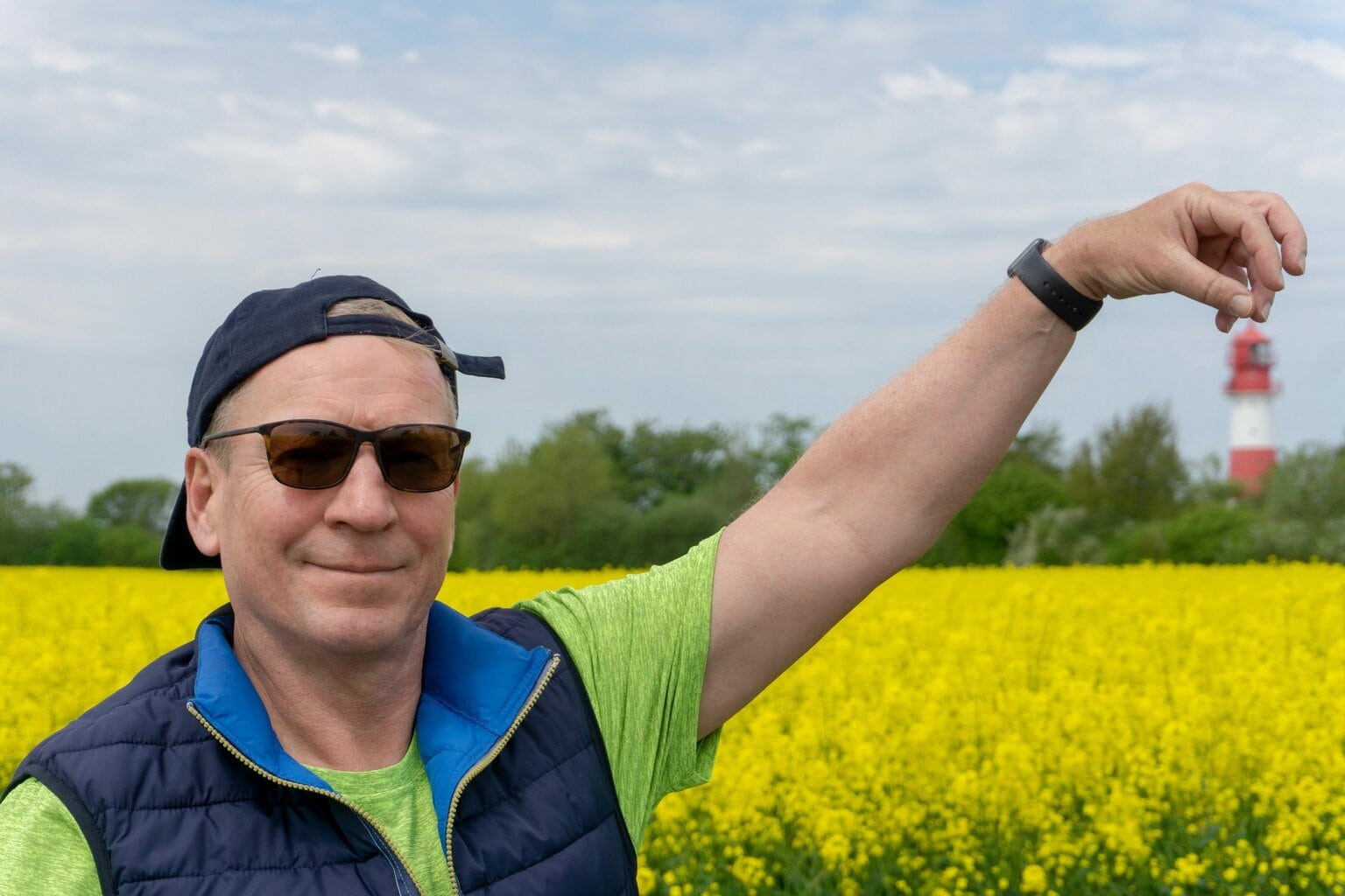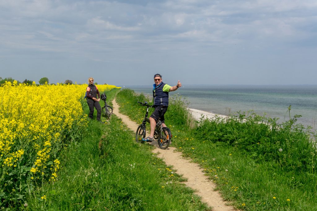 Nach Honig duftende, leuchtendgelbe Rapsfelder nahezu den ganzen Küstenradweg entlang, dazu weiße Strände, sattgrüne Wiesen und Wälder und das helle Blau des Schleswig-Holstein-Himmels – ein Träumchen.