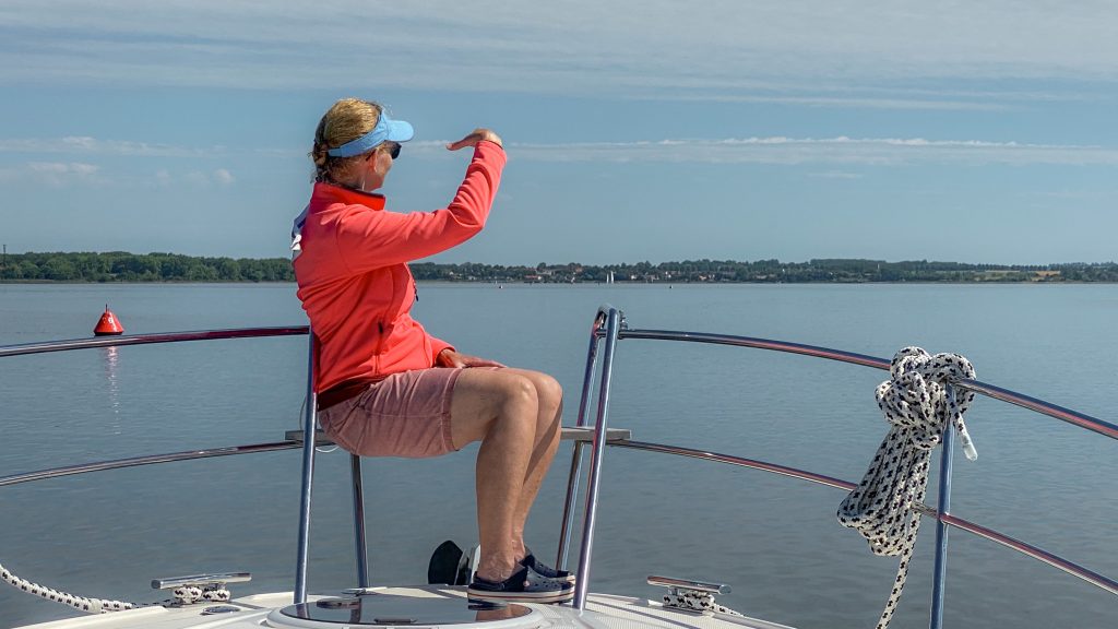 Heute wurde es richtig spannend: Neues Terrain für uns und laut Törnführer schwierig anzusteuern – das „Salzhaff „.