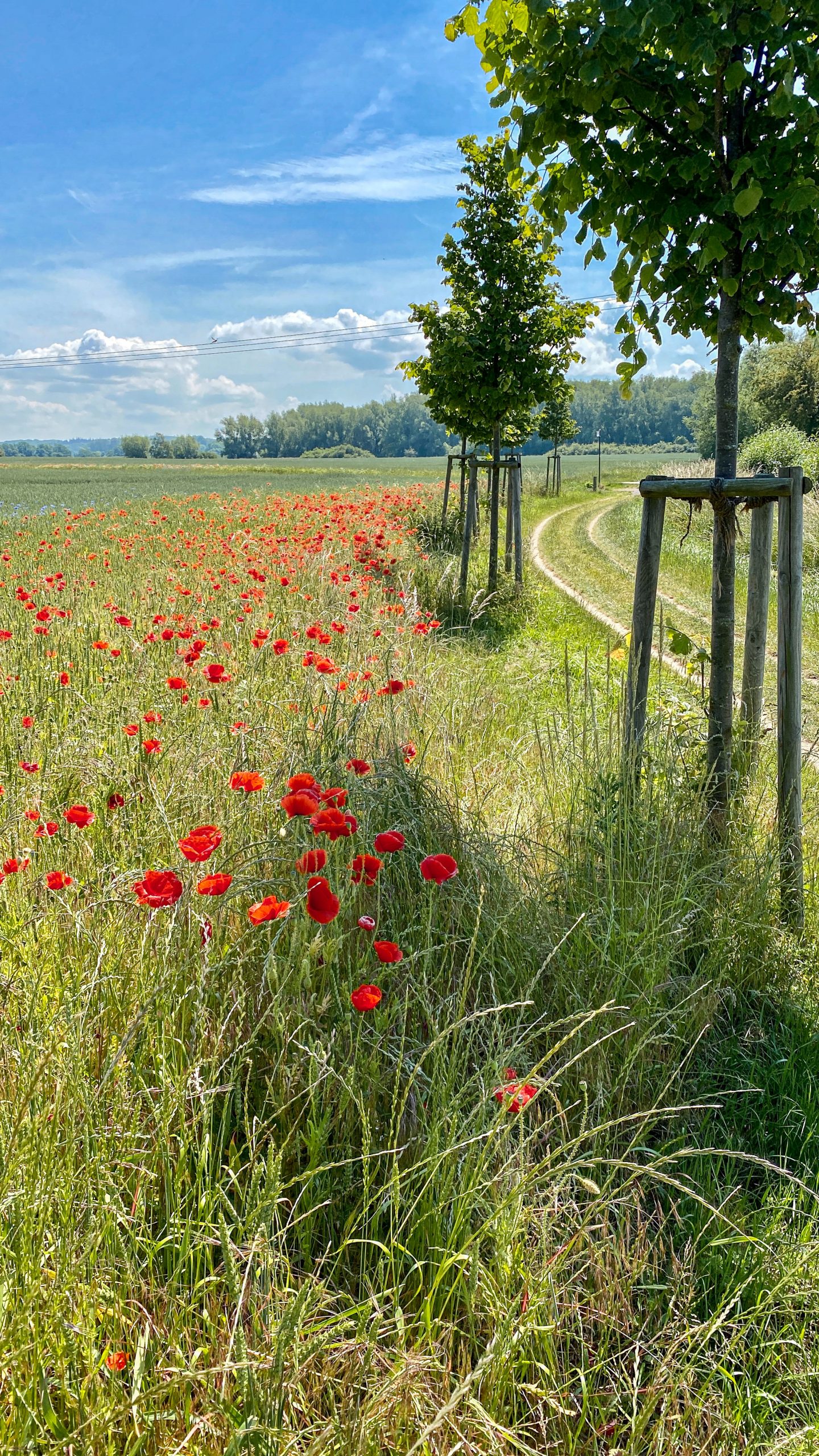 immer wieder die leuchtend roten Farbtupfer der Mohnfelder.