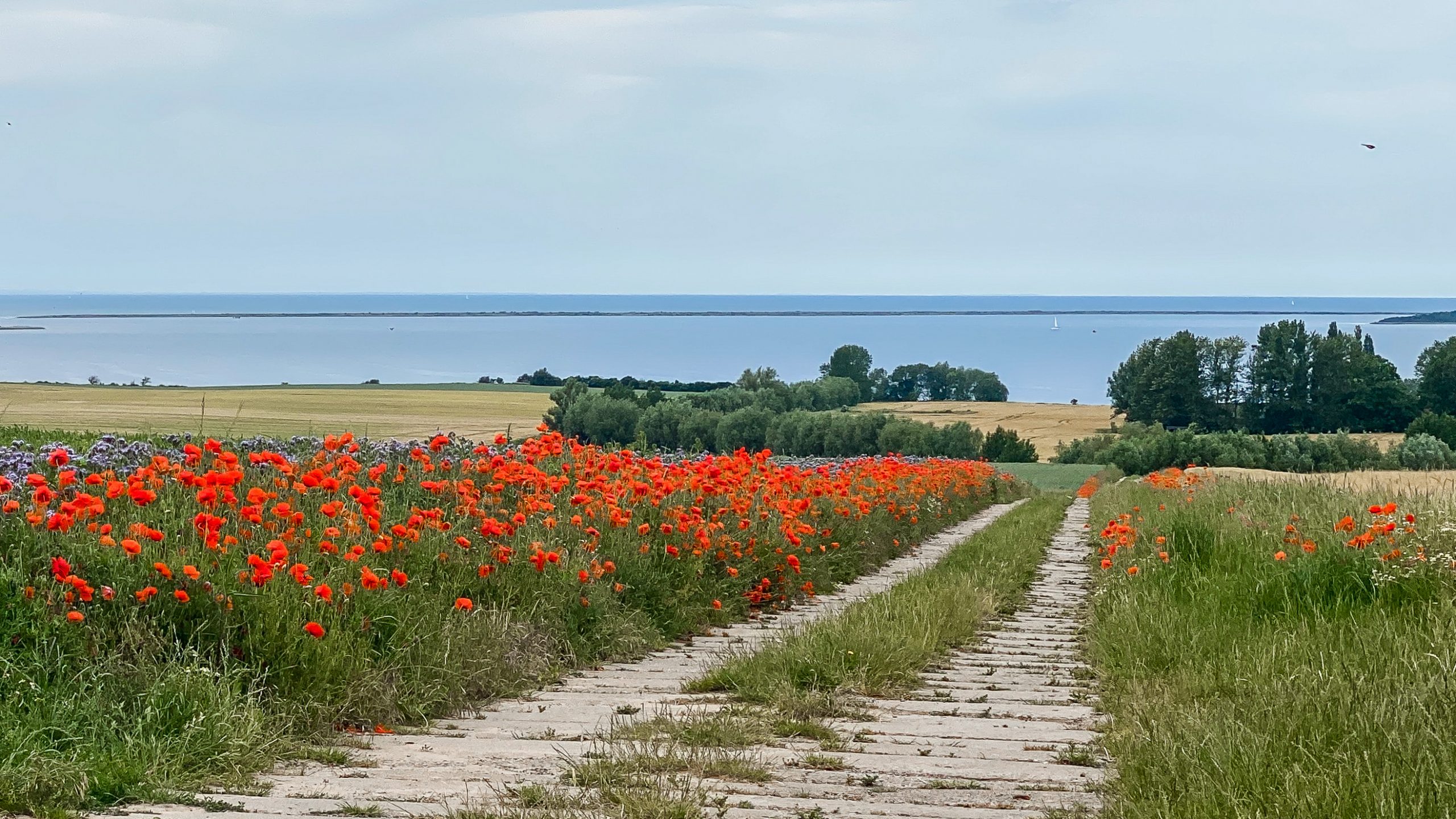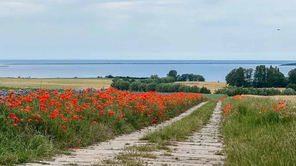Die Weite der Landschaft mit sanften Hügeln und Feldern, Strand, Wasser und