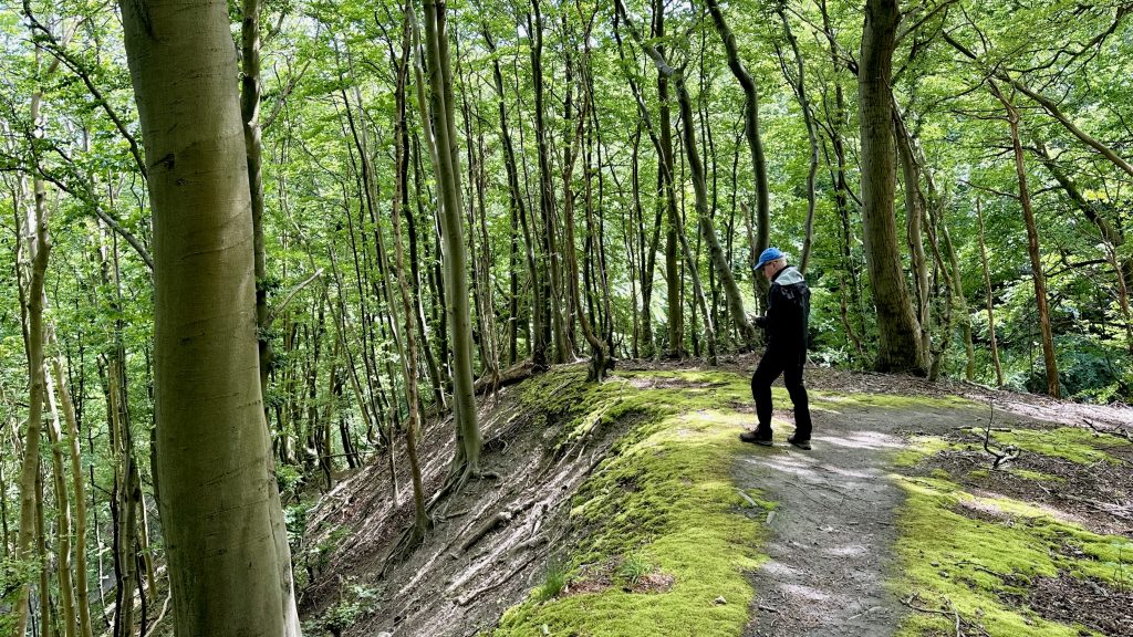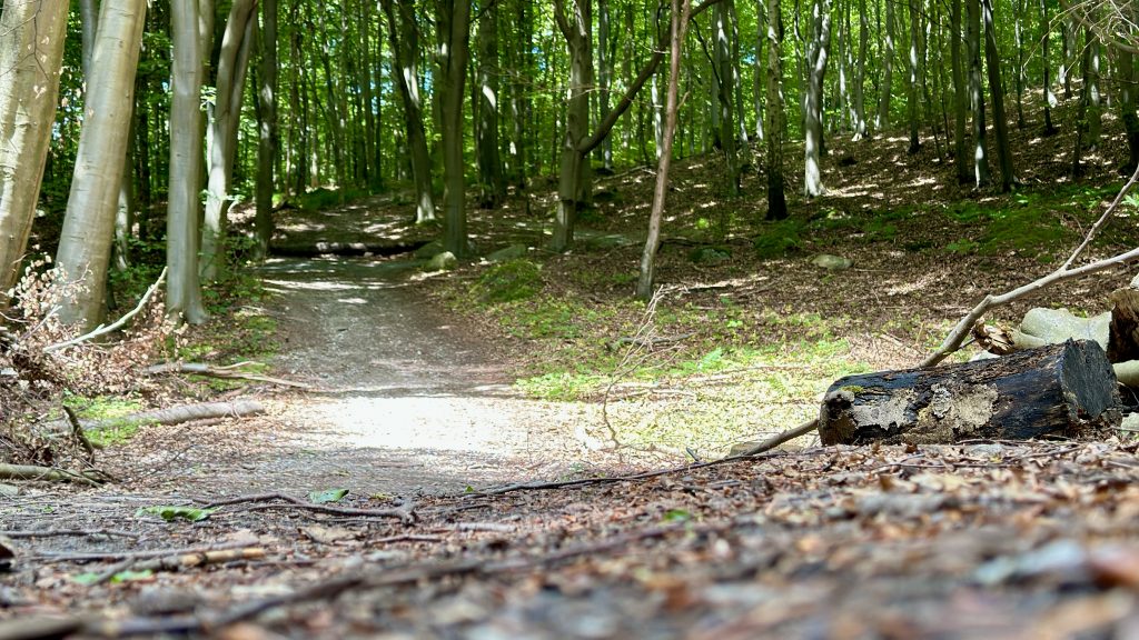 Diese Tourroute wird richtig sportlich! Wir biken auf der Mountainbike-Route durch den märchenhaften Buchenwald auf den Kreidefelsen Richtung Møns Klint.