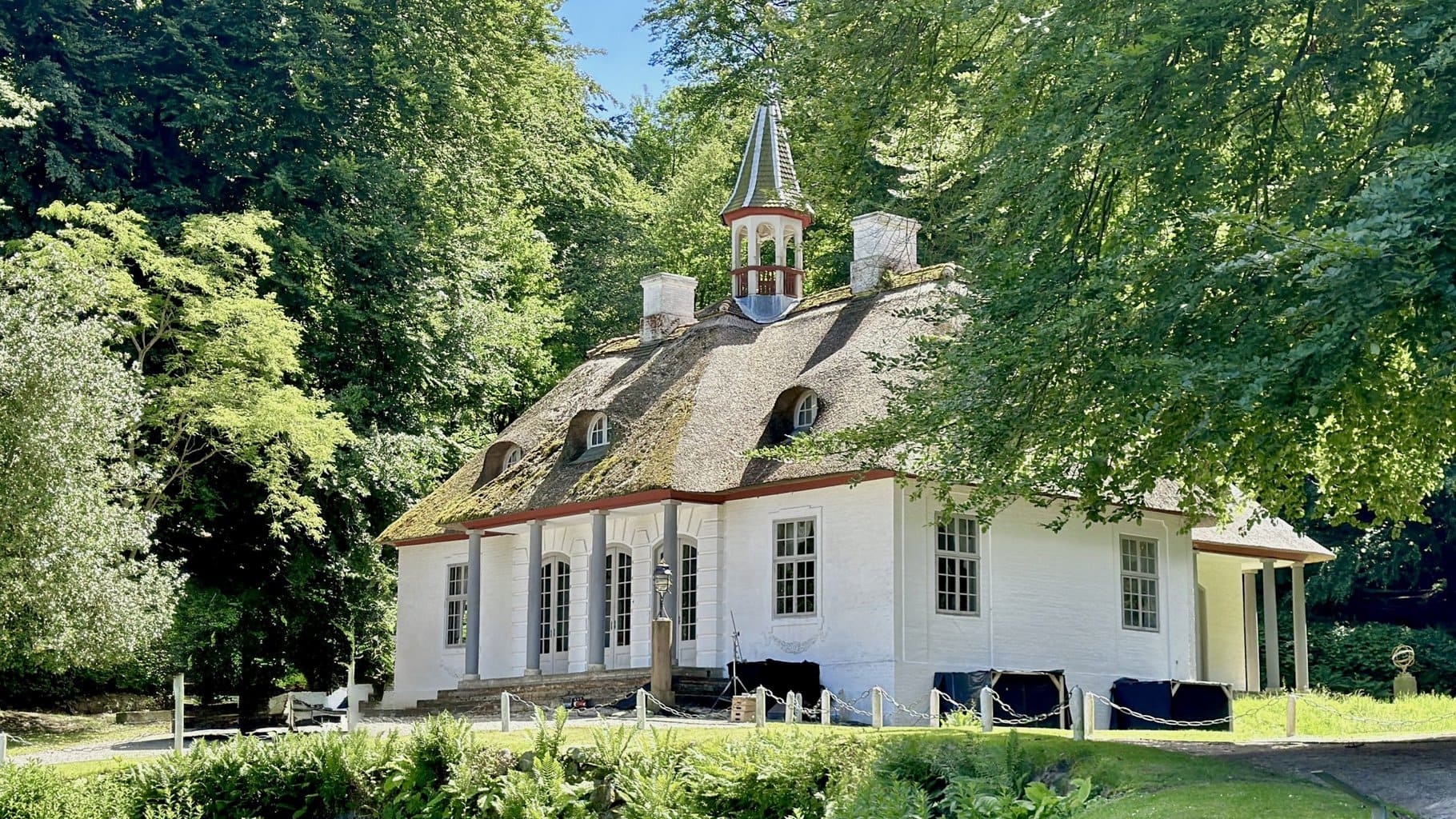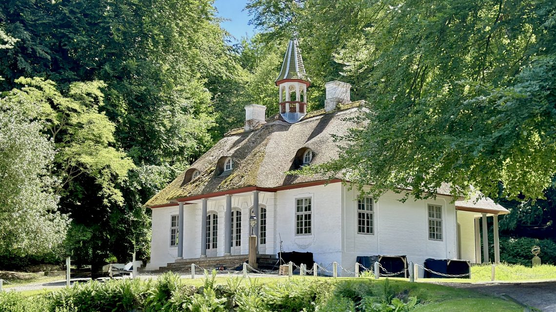 Wie eine kleine weiße Perle liegt das Lustschloss (eher eine kleine romantische Villa) auf einer Lichtung im Park und erzählt die Geschichte eines ‘Jetset-Paares’ des 18. Jhdts auf der Insel Møn namens Calmette.