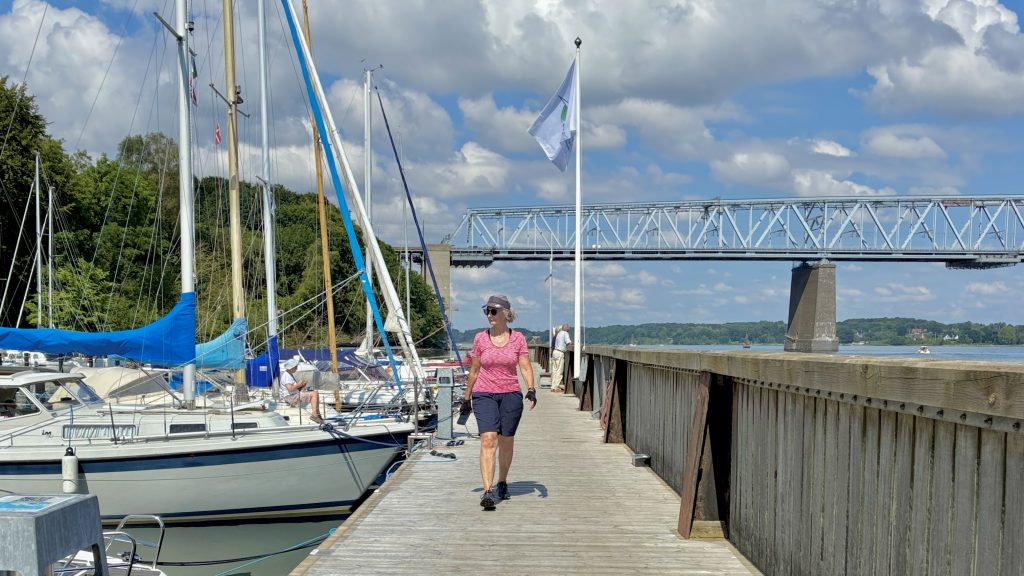 Der Hafen – mittlerweile ein „smarter Hafen“ 😃 – ist ein ganz kleiner Hafen, der direkt vor der alten Eisenbahnbrücke am Südufer kurz vor Middelfart liegt.