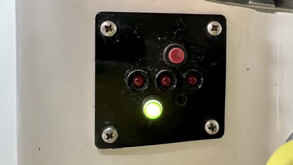 Technisch sind wir jedenfalls bestens gerüstet: mehrere Wassersensoren (akkustisch und optisch) im Bereich der Bilge, eine von außen zu bedienende Motorraumbeleuchtung sowie eine Maschinenraum-Kamera.