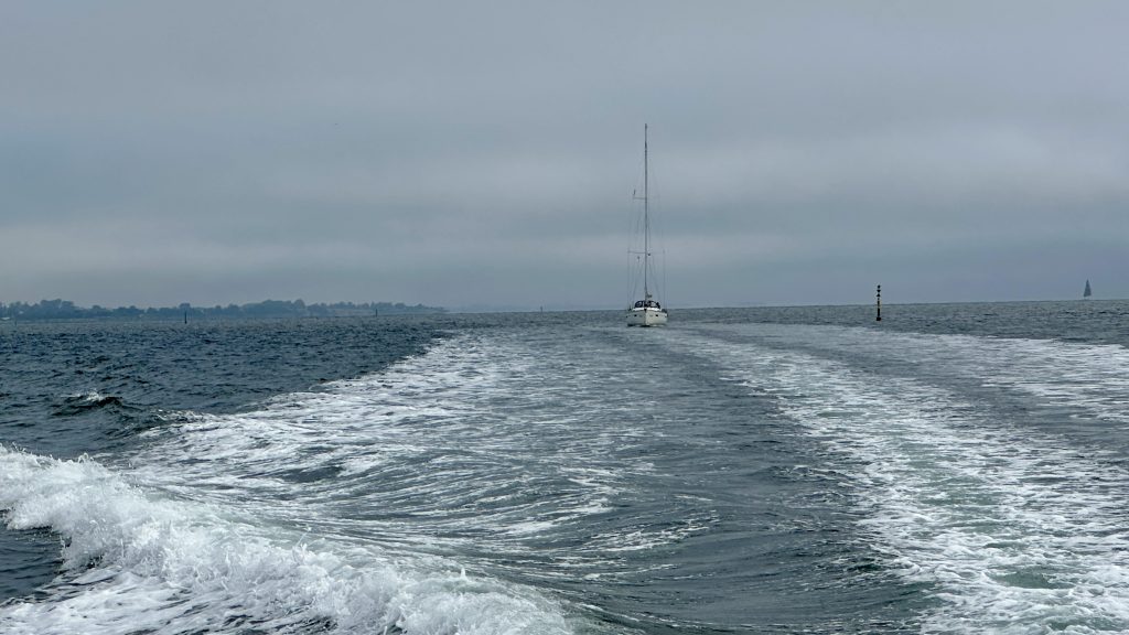 Der Morgen beginnt herbstlich frisch mit Nebelschwaden: Wir starten um 8 Uhr in Hou – natürlich nicht, ohne vorher noch das Dieselangebot mitzunehmen. Unser ‘Schluckspechtchen’ bedankt sich zufrieden gluckernd.