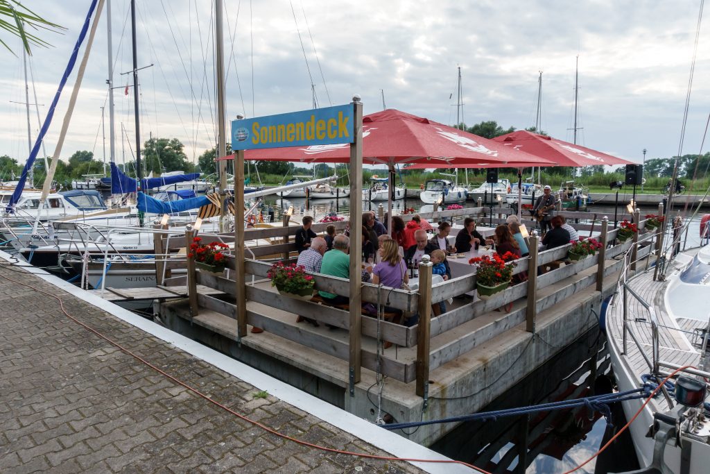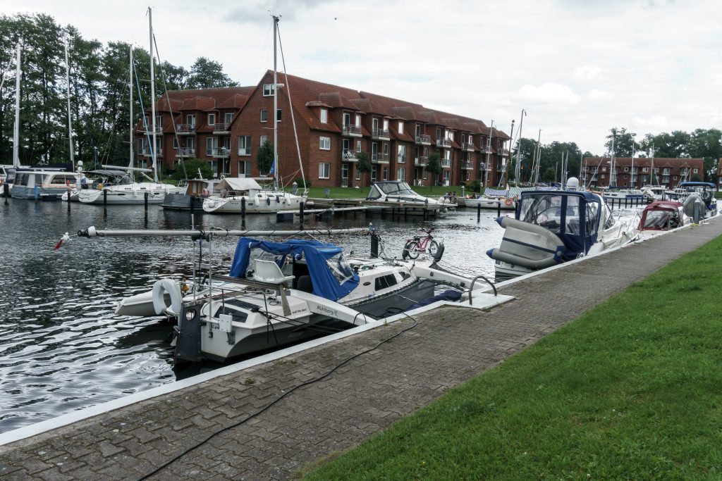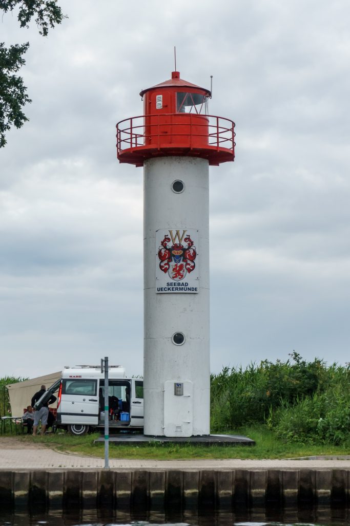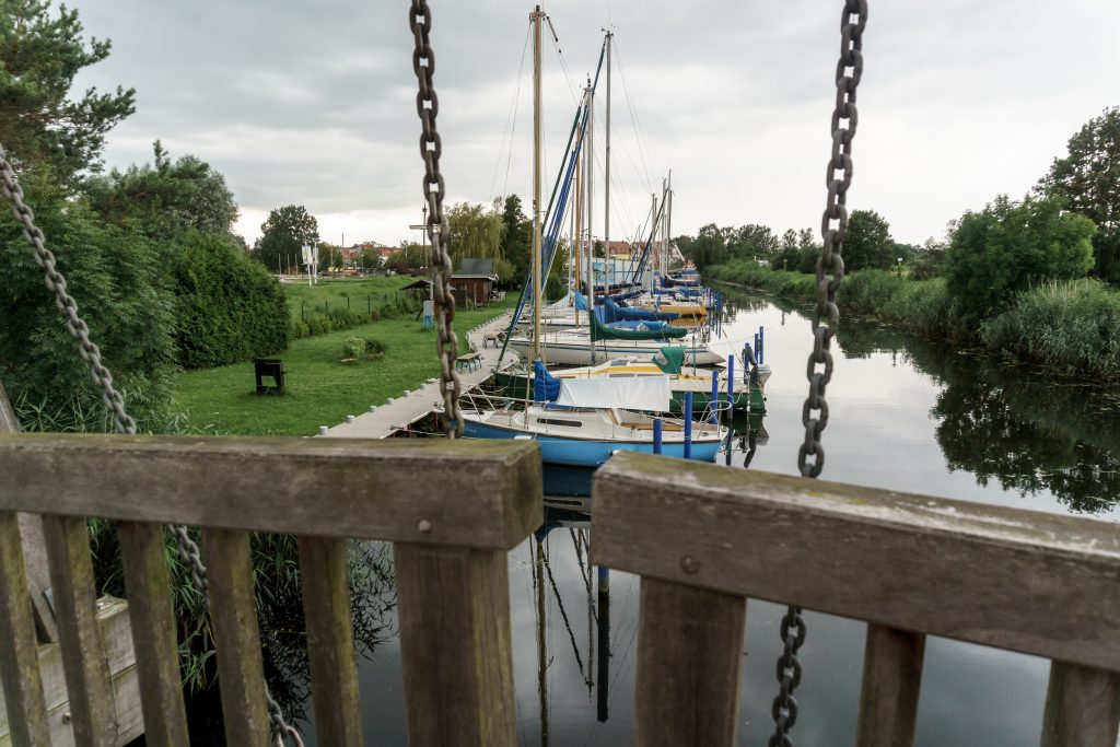 Lieber navigieren wir bei Nieselregen über das Achterwasser und das Kleine Haff zur Lagunenstadt Ueckermünde (eine gute Empfehlung der M&M’s aus N., danke).