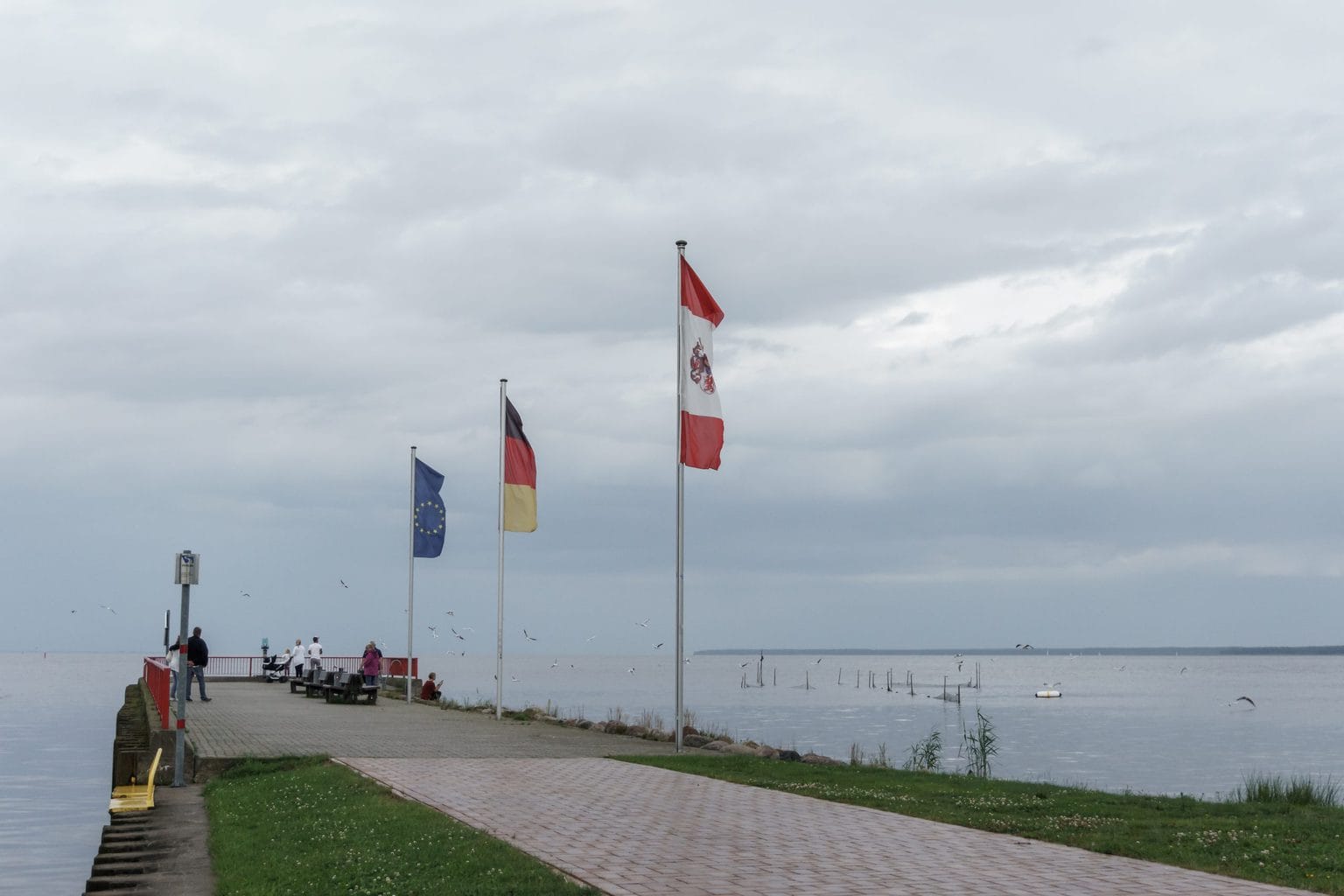 Lieber navigieren wir bei Nieselregen über das Achterwasser und das Kleine Haff zur Lagunenstadt Ueckermünde (eine gute Empfehlung der M&M’s aus N., danke).