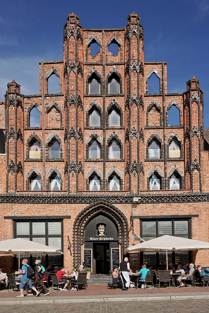 155 Jahre, bis zum Ende des Dreißigjährigen Krieges, gehörte die Stadt Wismar zu Schweden, daher findet man in der Stadt immer wieder diese Herkulesköpfe mit Barockbemalung. Der Alte Schwede ist das älteste erhaltene Bürgerhaus (1380) in Wismar.