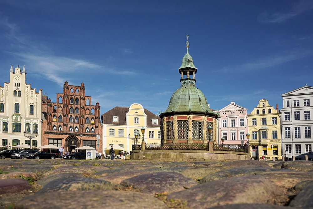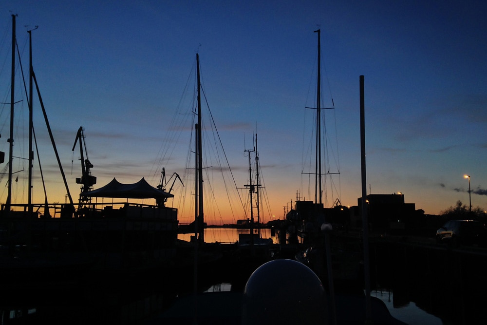 Heute haben wir die Qual der Wahl: in der alten Hansestadt Wismar können wir gleich unter fünf Häfen auswählen. Wir entscheiden uns auf Empfehlung für den ‚Westhafen‘. So sind wir schnell im Zentrum des Geschehens und in der Nähe des Alten Hafens.