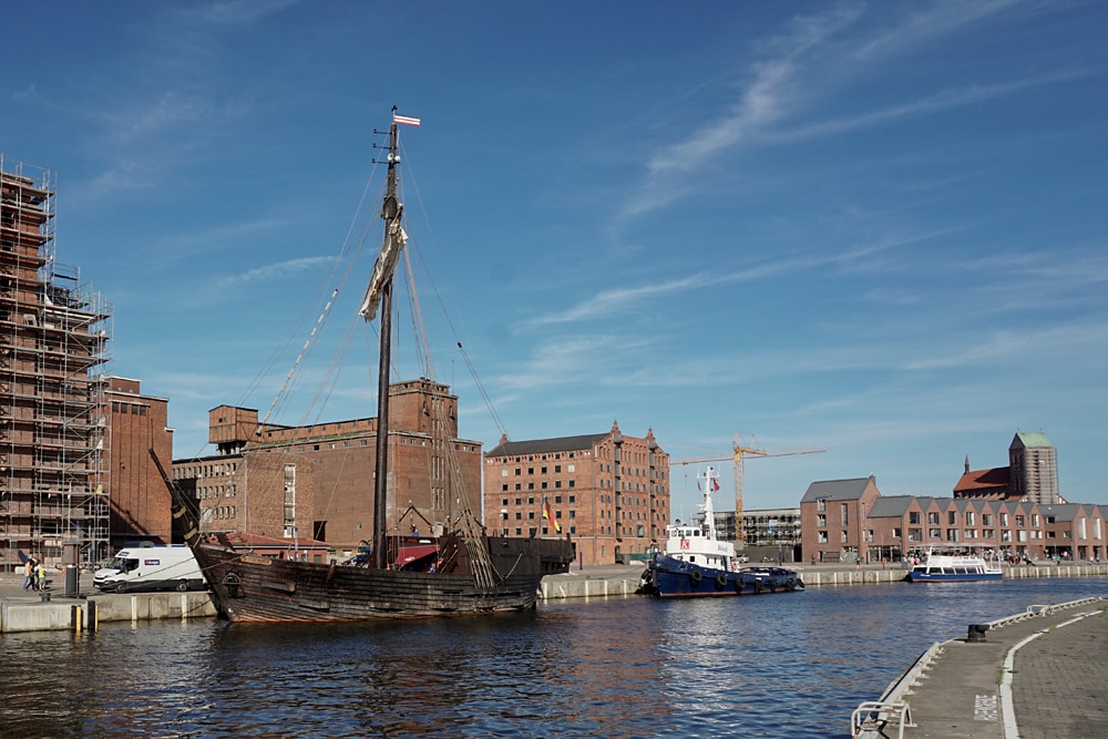 Im Alten Hafen kann man den Glanz der Hansezeit nur noch erahnen, die alten Gebäude mussten zum Teil neuen Backsteinbauten weichen. Ein bisschen Hafenromantik ist zum Glück noch übrig geblieben.