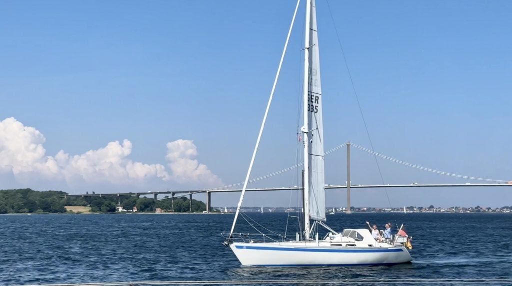 Ich komme ganz schön ins Schwitzen mit den Blogbeiträgen, während die Allure schon wieder den Kleinen Belt durchpflügt … heute jedoch ganz gemütlich in Verdrängerfahrt.
