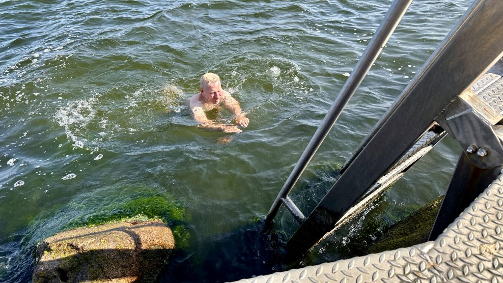 Wir erkunden heute unser schwedisches 100-Seelen-Dorf und die Gegend um den Hafen Kristianopel mit den Rädern, laufen durch einen wunderschönen Dünenwald und schließen unsere Tour erneut mit einem Sprung ins kalte Ostseewasser ab.