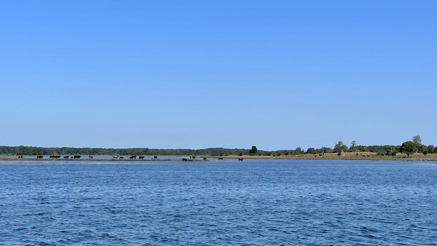 im ‚Kühemarsch‘ durchs Wasser zum Grasen auf ihre Tagesinsel 😄