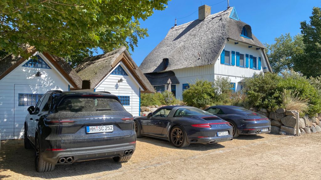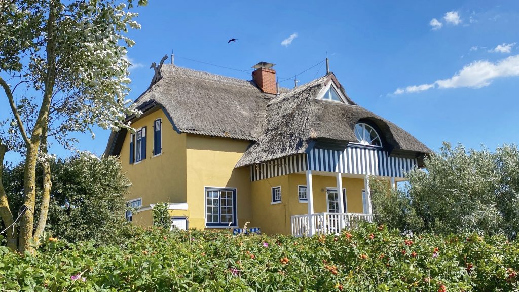 Die reetgedeckten Holz- und Fachwerkhäuser tragen Namen wie „Wotan“, „Sturmmöwe“, „Blaues Haus“, „Rote Villa“.