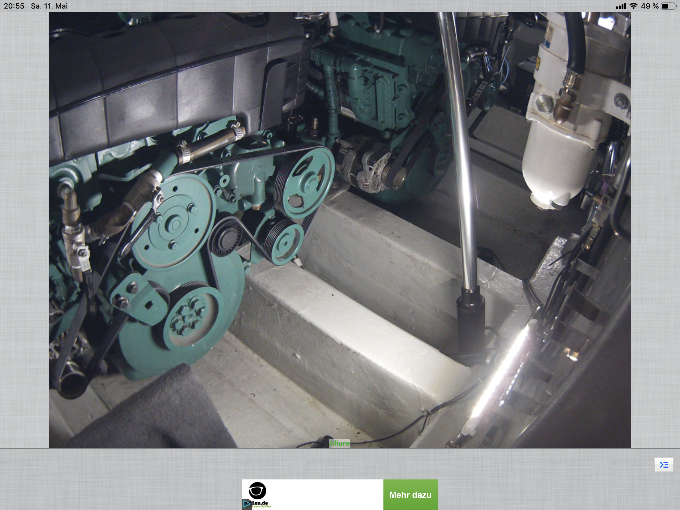 Die beiden dicken Grünen im Motorraum schnurren ohne Probleme, so wie sie das auch sollen. Trotz unserer schweren Zuladung (dieses Jahr haben wir hoffentlich ausreichend Pfälzer Riesling für die kommenden Monate an Bord) schwebt die Allure mühelos in Gleitfahrt über die glatte Ostsee.