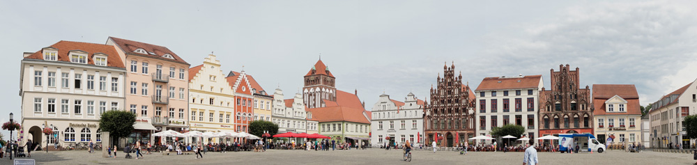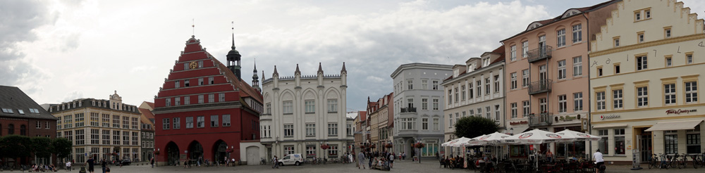 Wir hätten auch auf der Ryck weiter nach Greifswald (ca. 5 km) schippern können, aber wir entschließen uns fürs Radeln. Die Hanse- und Universitätsstadt Greifswald erinnert vom Stadtbild her stark an Stralsund und war ebenfalls 200 Jahre lang schwedisch.
