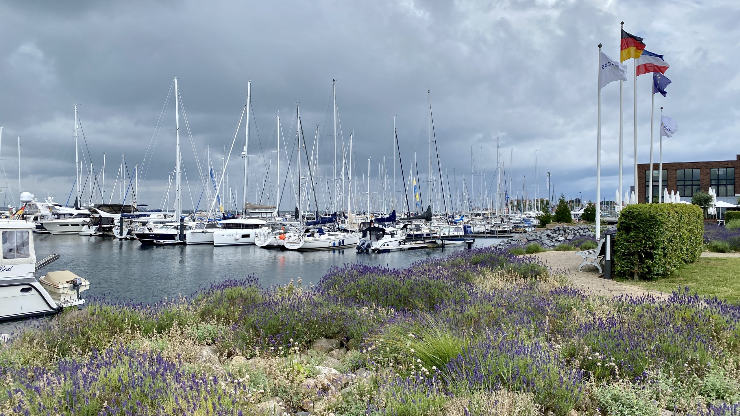 Grau in Grau, dunkle Wolken, Wind aus der falschen Richtung – alles Gründe, warum wir noch einen Tag in Laboe verlängert haben. Ist ja kein Problem, wir genießen unser Leben, egal, wo wir gerade sind.