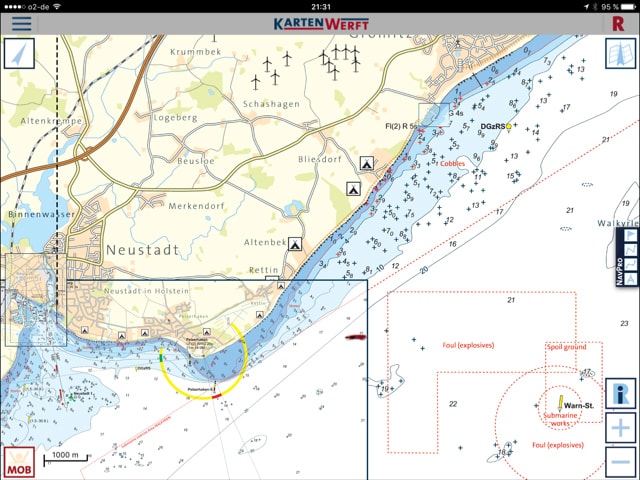 Auf der Route von Grömitz nach Neustadt sehen wir dann plötzlich zwei U-Boote auf unserem Plotter?!?