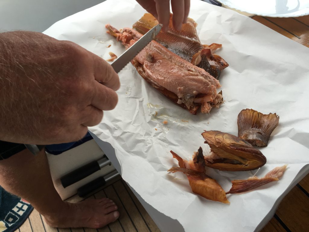 Die winzige „Inselstadt“ Malchow überrascht uns mit hübschen kleinen Geschäften, Cafes und Restaurants. Für den Geheimtipp unserer netten Bootsnachbarn, einen geräucherten Saibling in der Fischräucherei direkt vor Ort zu kaufen, sind wir sehr dankbar. Hat wunderbar geschmeckt!
