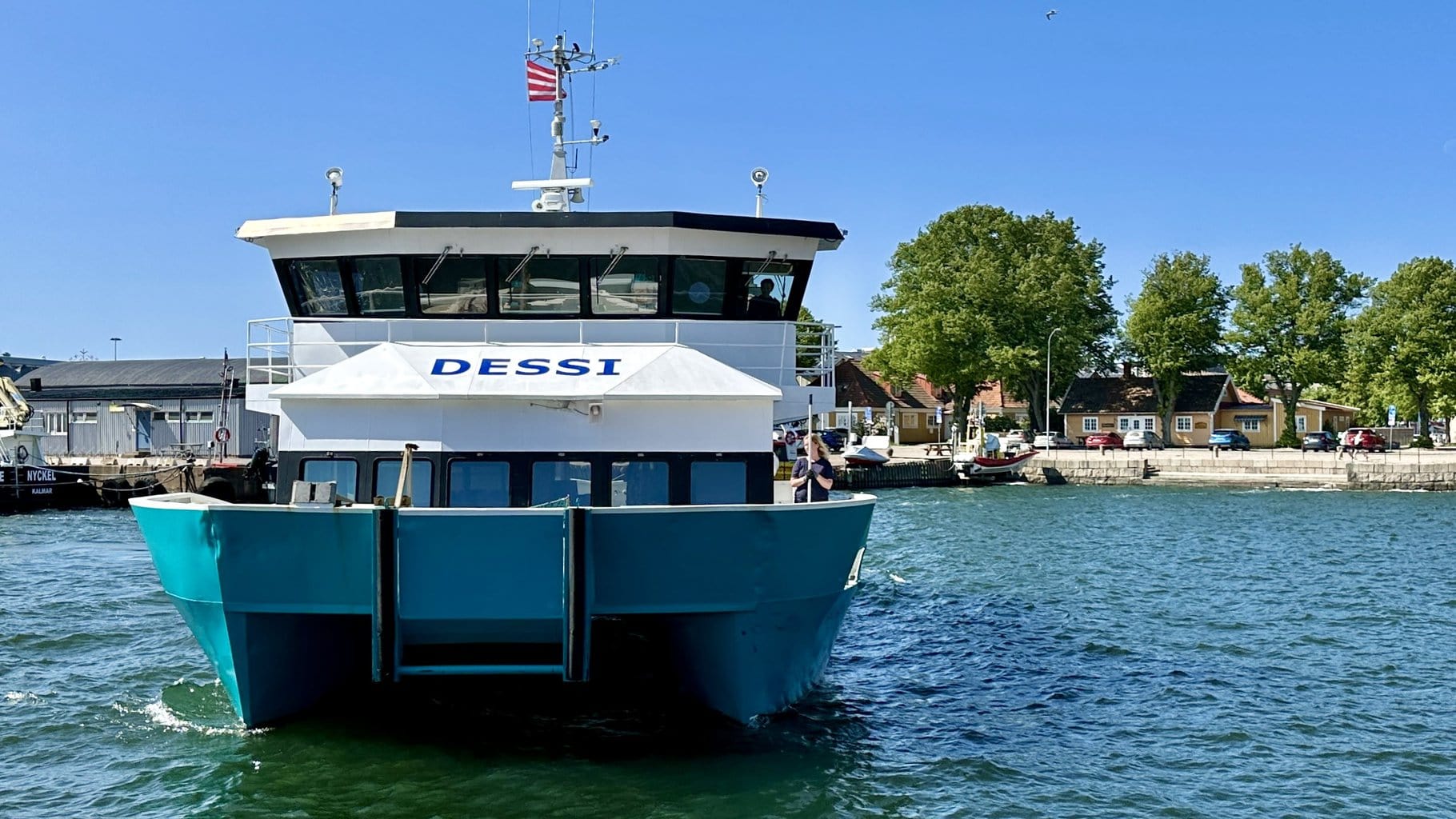 Nachdem wir Öland nicht auf eigenem Kiel anlaufen werden – der Wind macht uns einen Strich durch die Rechnung – nutzen wir heute die Fähre DESSI als Transportmittel von Kalmar aus.