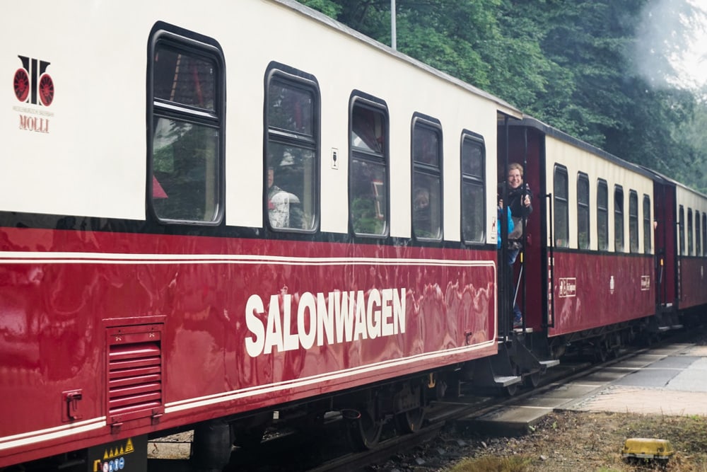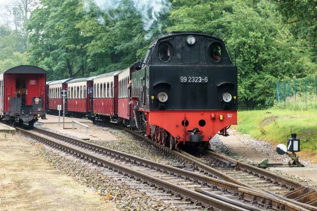 Die Ostsee-Schmalspurbahn MOLLI fährt mehrmals täglich auf schmalen Schienen mit nostalgischem Gebimmel zwischen Kühlungsborn und Bad Doberan.