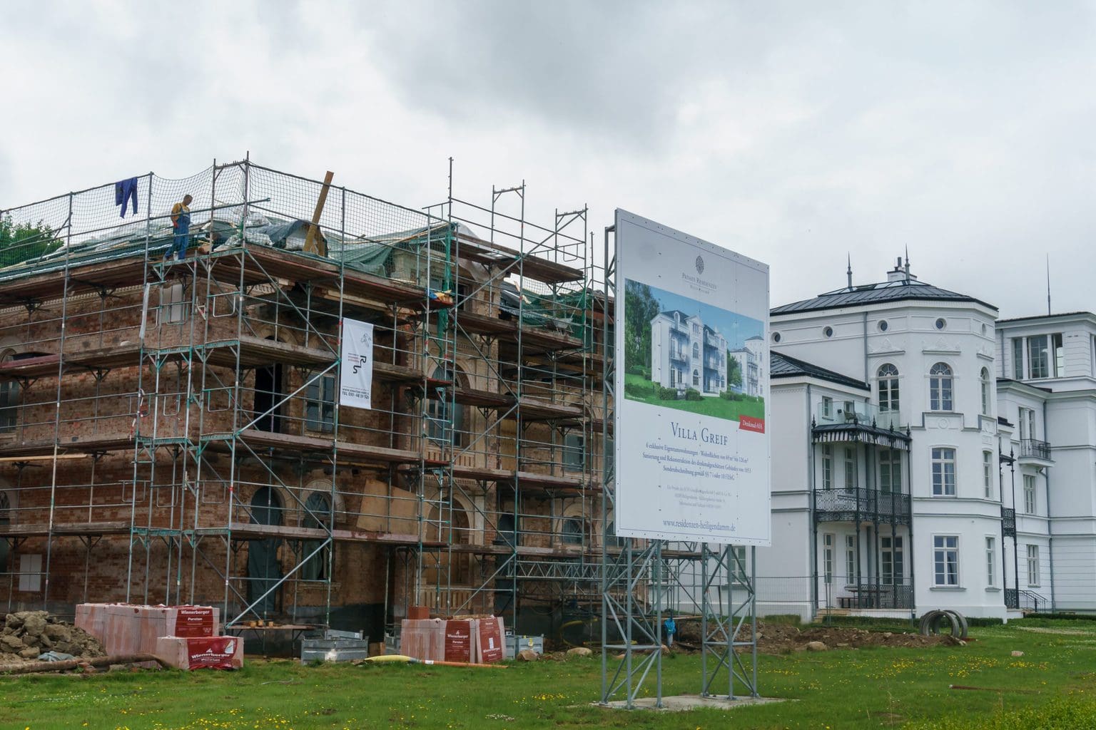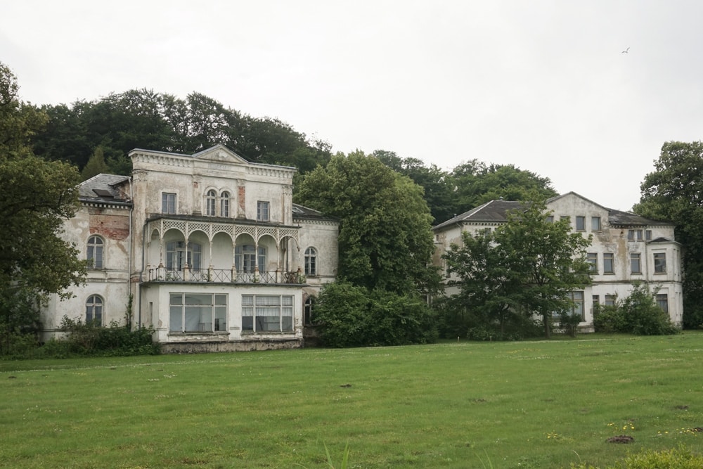 alte verfallene Villen, die auf eine Sanierung warten. Insgesamt sieben klassizistische Logierhäuser stehen hier direkt am Meer vor einer traumhaften Buchenwaldkulisse und sollen exklusive als ‚Private Residenzen‘ restauriert werden.